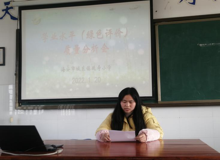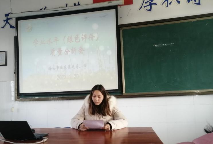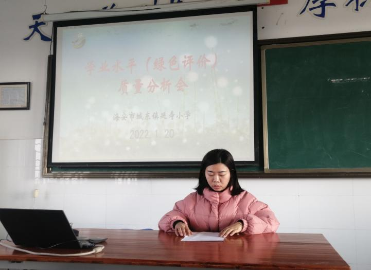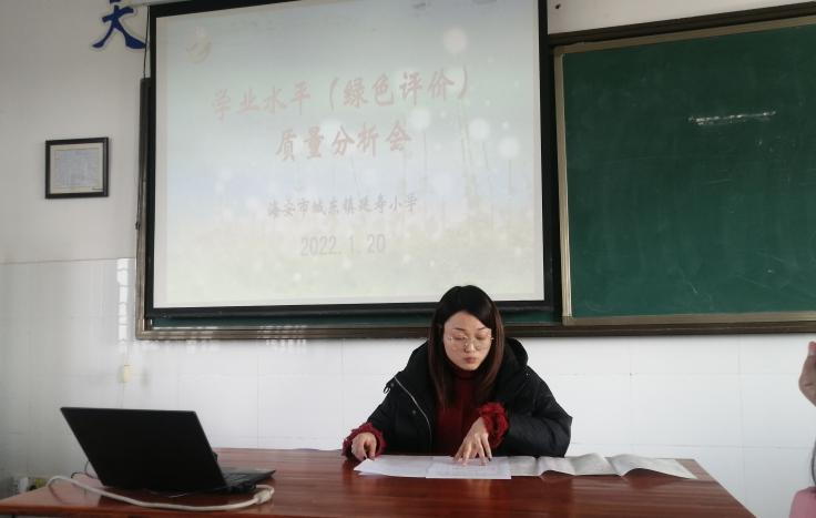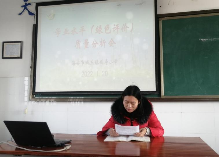 在双减政策的指导下,在全体师生的努力下,城东镇延寿小学全面提高教学质量,优化课堂结构,圆满完成了本学期教育教学工作任务。针对本学期的学业水平测试,1月20日下午,全体教师集中进行了学业水平(绿色评价)质量分析会,本次质量分析会由副校长于九军主持。
